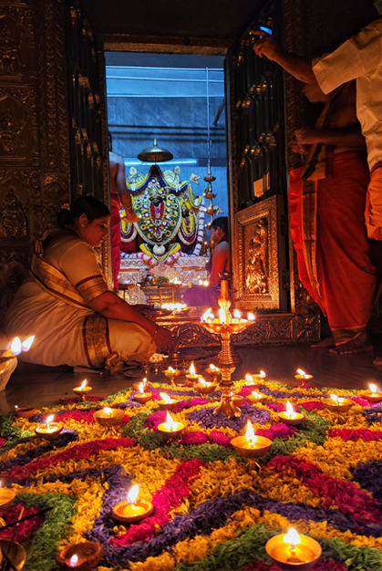 Light the diya and incense sticks. The flame represents the divine light that removes darkness and ignorance.