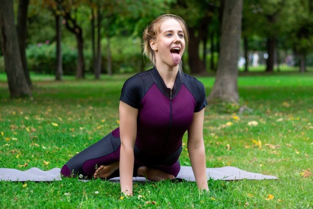 A seated pose where you extend your tongue and roar like a lion, releasing tension and enhancing vocal abilities.